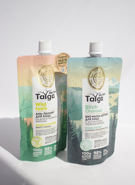 Наткнулась на эти маски на Озоне и решила взять на пробу: Natura Siberica Doctor Taiga Pores Detox Глубокое очищение пор БИО маска-детокс для лица и Natura Siberica Doctor Taiga Glow Activtor Beuty Сияние AHA-пилинг для лица.